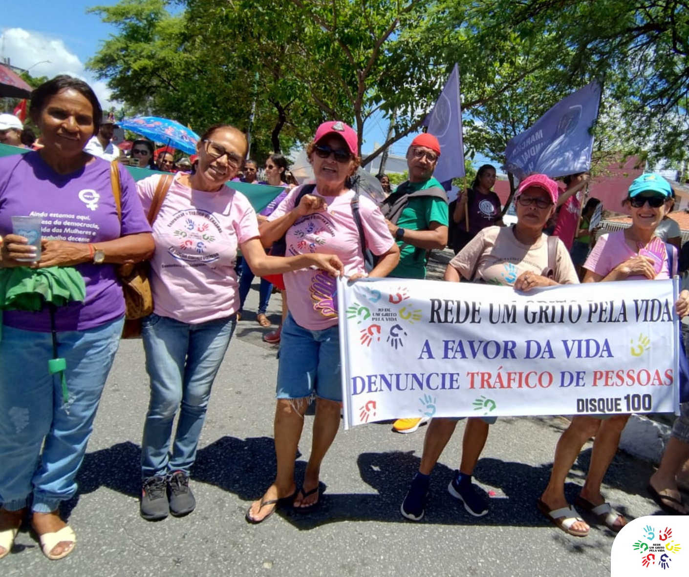 No Dia Internacional da Mulher, nosso grito pela vida ecoou nas ruas em defesa das companheiras. Em Maceió (AL), integrantes da Rede participaram da mobilização do 8M, um ato unificado de denúncia e promoção da vida. “Caminhando, cantando e celebrando a luta diária de todas as mulheres, distribuímos materiais gráficos em formato de mãos, com informações sobre o tráfico de pessoas”, afirmou Joana Pundyk.