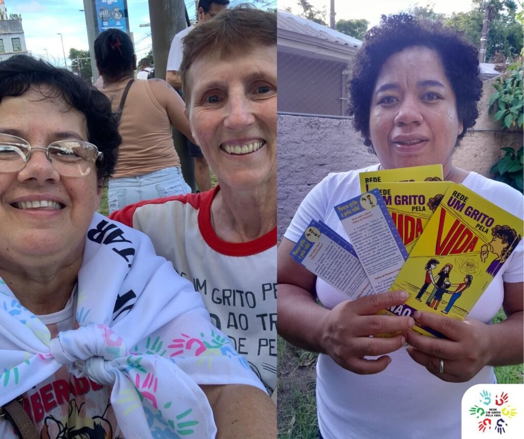 Ao longo do percurso, as integrantes da Rede Um Grito Pela Vida realizaram uma ação de sensibilização, com a distribuição de folders informativos que abordam as modalidades do tráfico de pessoas, além de orientações sobre prevenção e formas de enfrentamento desse crime que atinge, de modo especial, mulheres, crianças e pessoas em situação de vulnerabilidade.