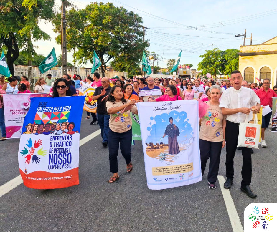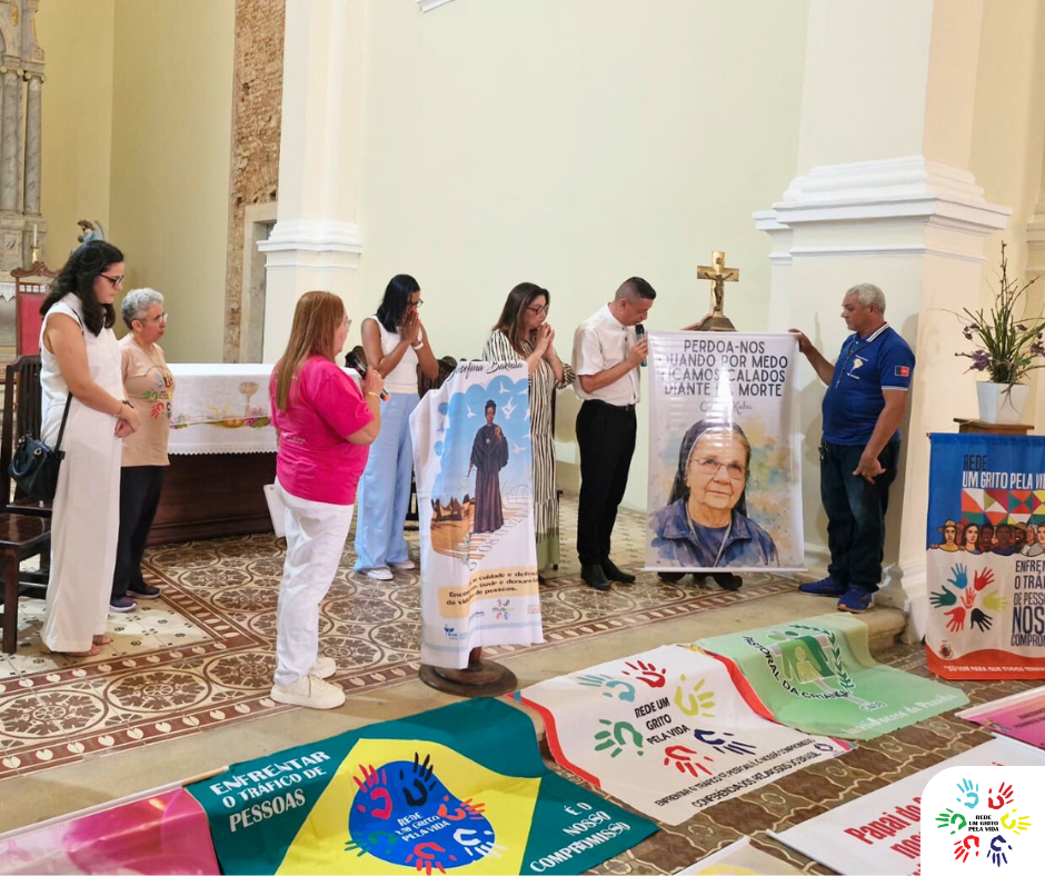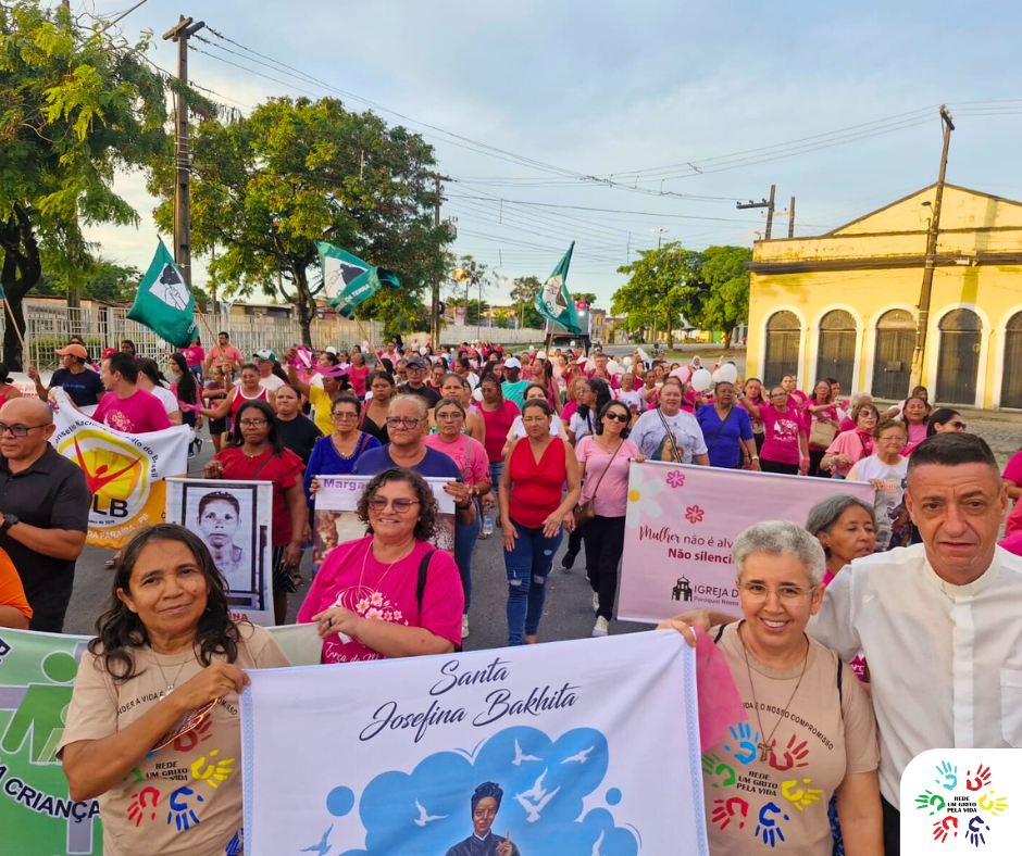 A programação seguiu com uma caminhada pelas principais ruas do Centro Histórico de João Pessoa, em direção ao Santuário da Conceição, no bairro do Varadouro. O percurso foi marcado pela presença expressiva de fiéis, especialmente grupos de mulheres, e pela atuação da Rede, que integrou a linha de frente com suas bandeiras, tornando visível o compromisso com a defesa da vida e da dignidade.