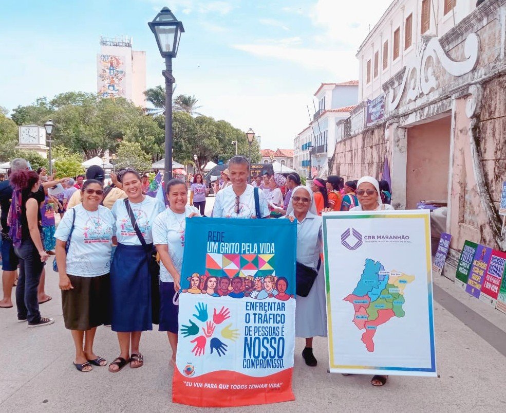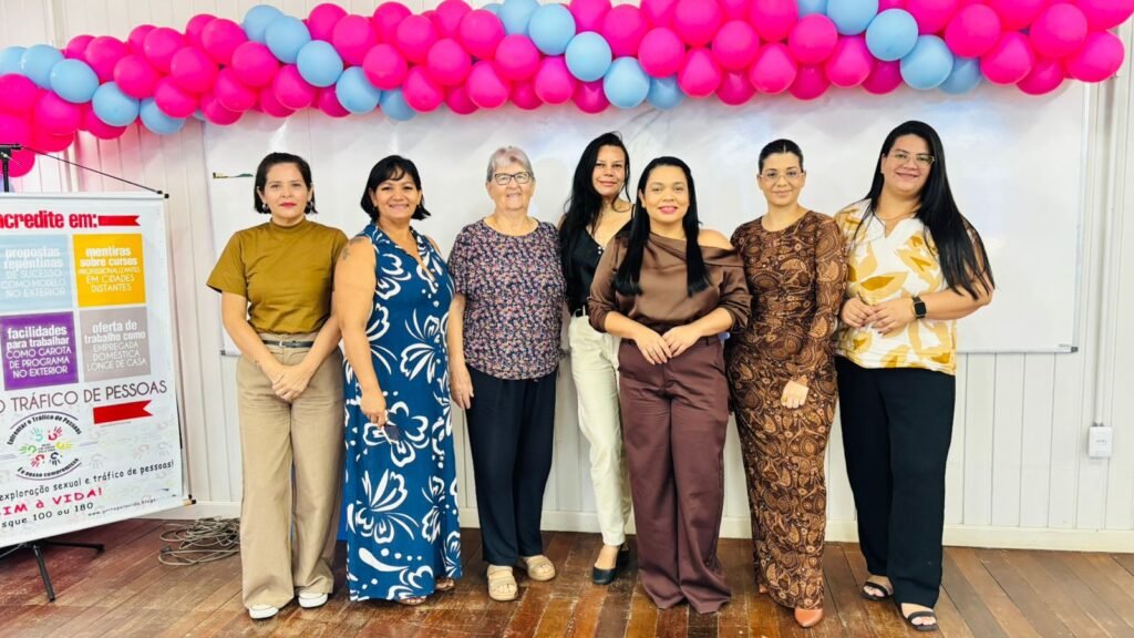 Durante o encontro, o tema do tráfico de pessoas foi apresentado como uma realidade que atinge principalmente mulheres e meninas, despertando grande interesse entre as participantes.
